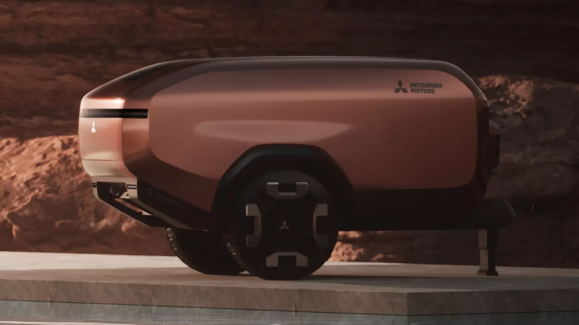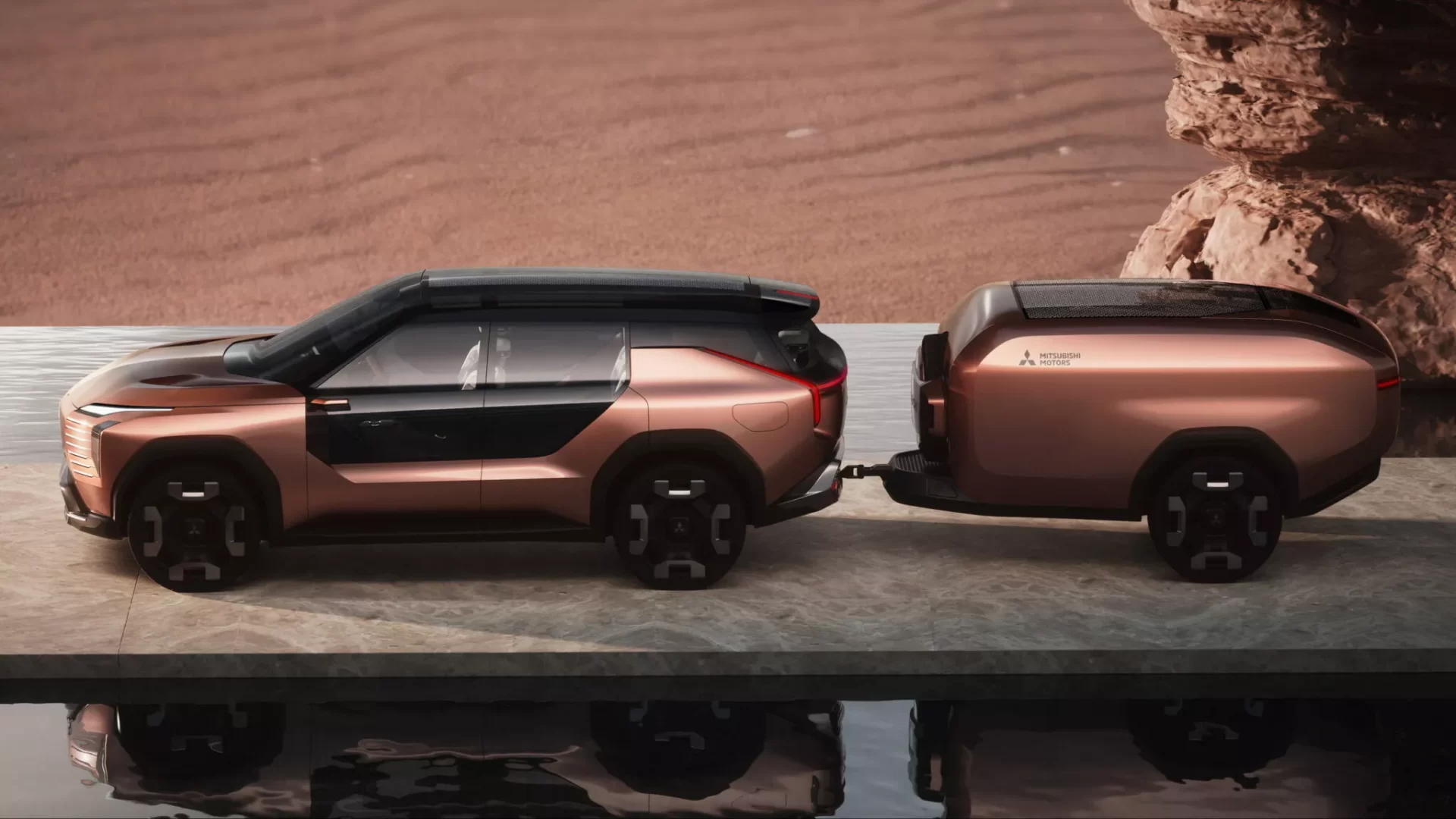 このトレーラーを牽引し、電力をSUV本体から供給する――そんな未来の旅スタイルを、三菱は静かに提示しています。