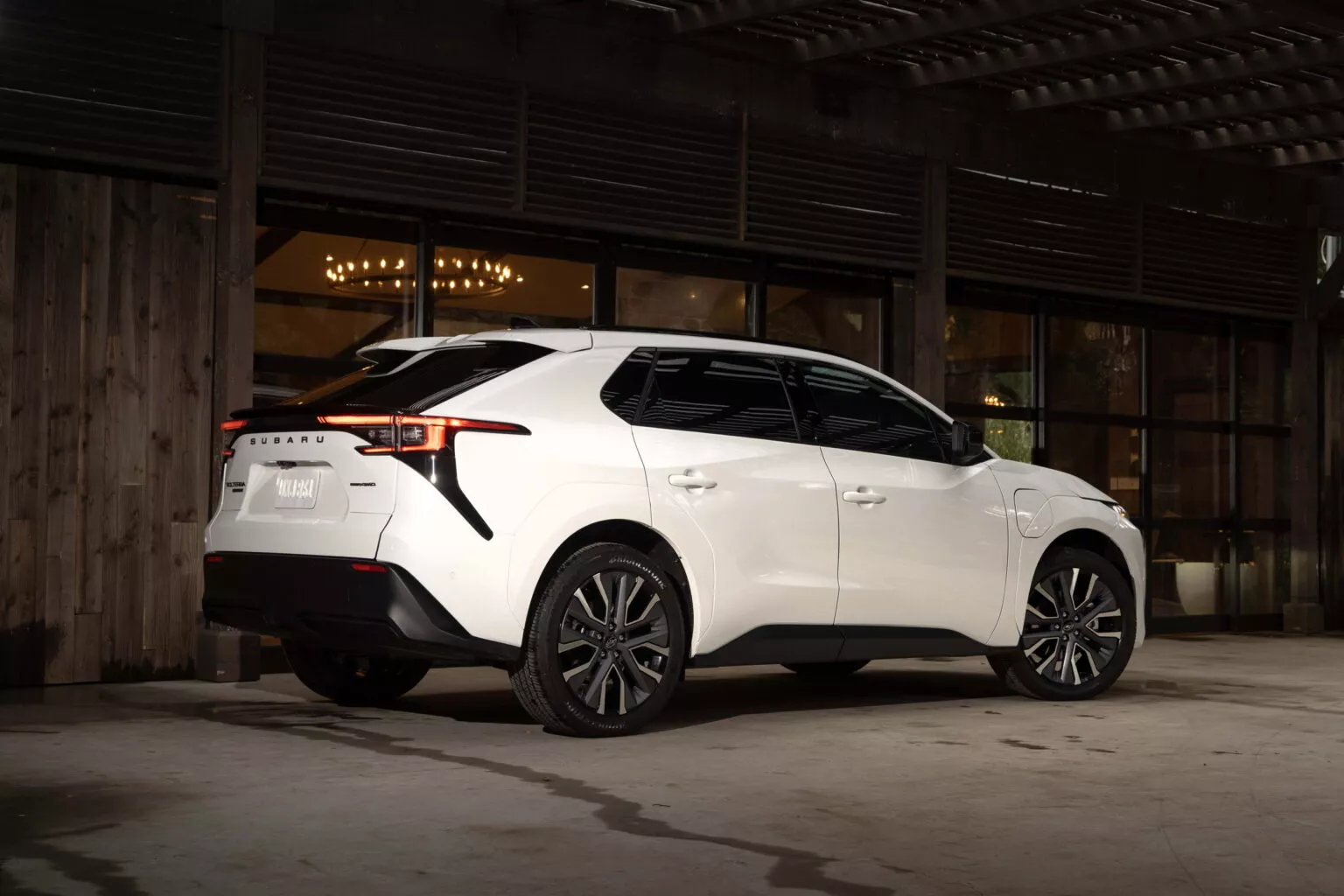 リヤゲートには新しい「SUBARU」ロゴが浮かび上がり、夜の街を走るその姿には、“未来のスバル”を象徴する誇りが宿っています。