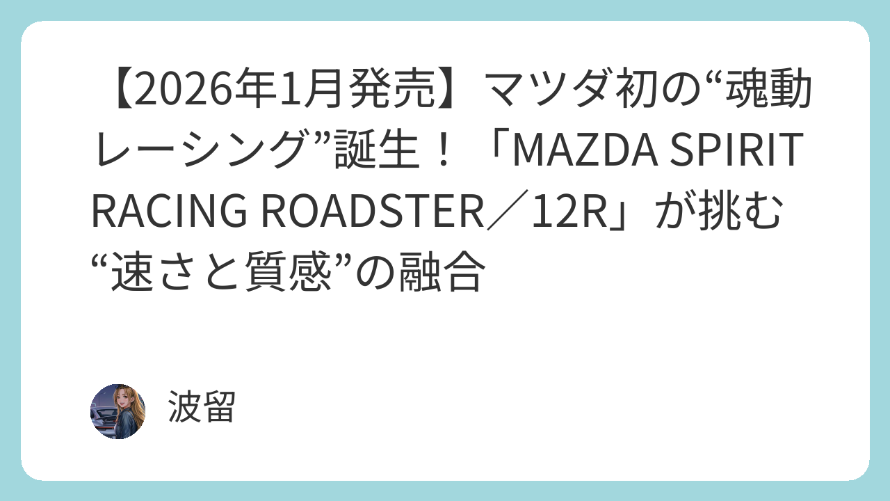 【1】ロードスター伝説の新章、2026年1月始動