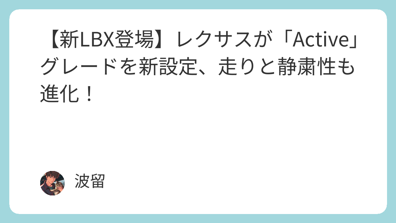 2025年5月15日、LEXUSはコンパクトSUV「LBX」の一部改良を実施するとともに、新グレード“Active”をラインアップに追加し、全国のレクサス店で販売を開始しました。価格4,200,000円~5,760,000円走りも静けさも、...