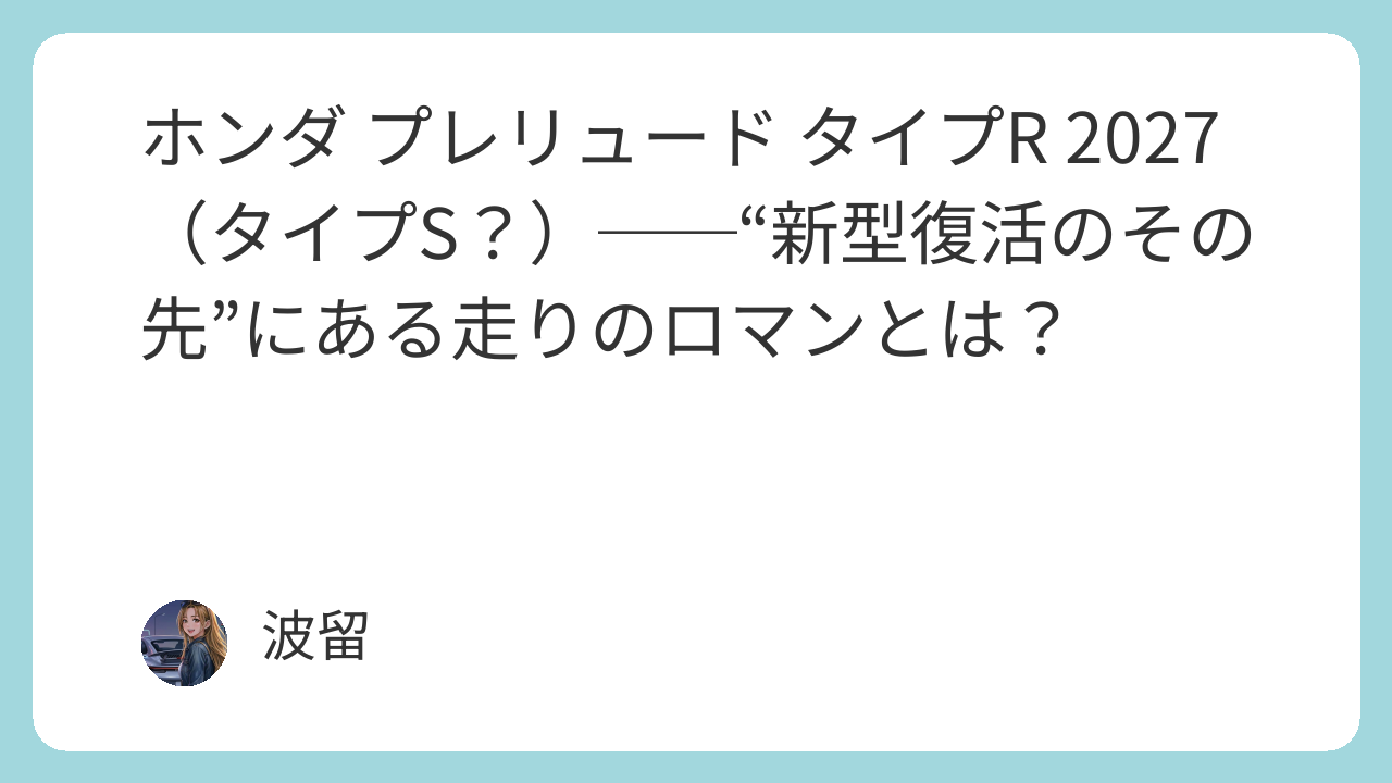 「プレリュードが帰ってきた」この一報だけでも、心を動かされた人は多かったはずです。けれど、東京オートサロン2026で公開されたプレリュード HRC コンセプトを前にして、多くのファンは気づいてしまいました。――これは“懐かしさ”の延長じゃな...