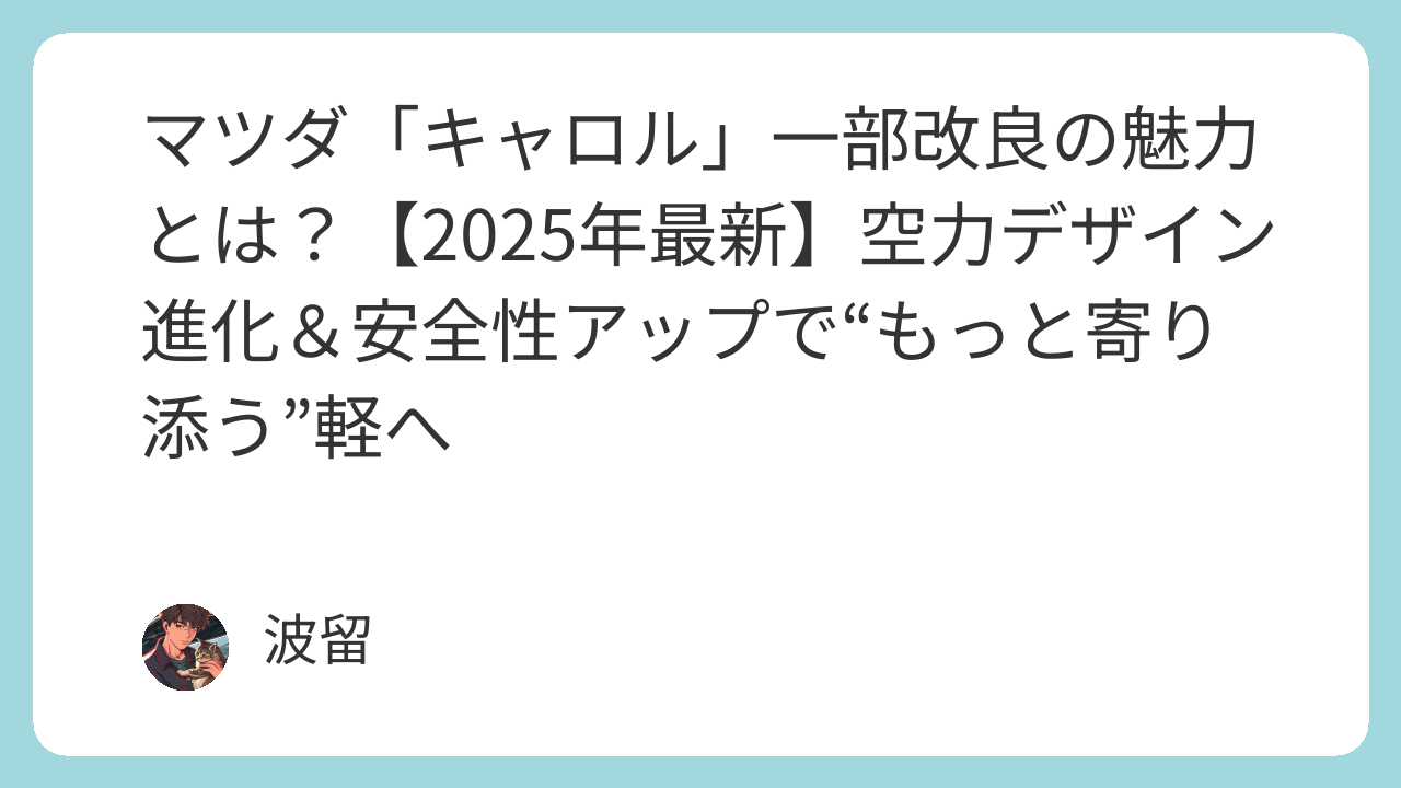 2025年7月24日にマツダが発表した、軽自動車「キャロル」の一部商品改良。価格 1,222,100 円~ 1,614,800 円そのポイントはズバリ、“デザイン進化×燃費向上×安全性能アップ”。この記事では、その魅力と進化の理由をわかりや...